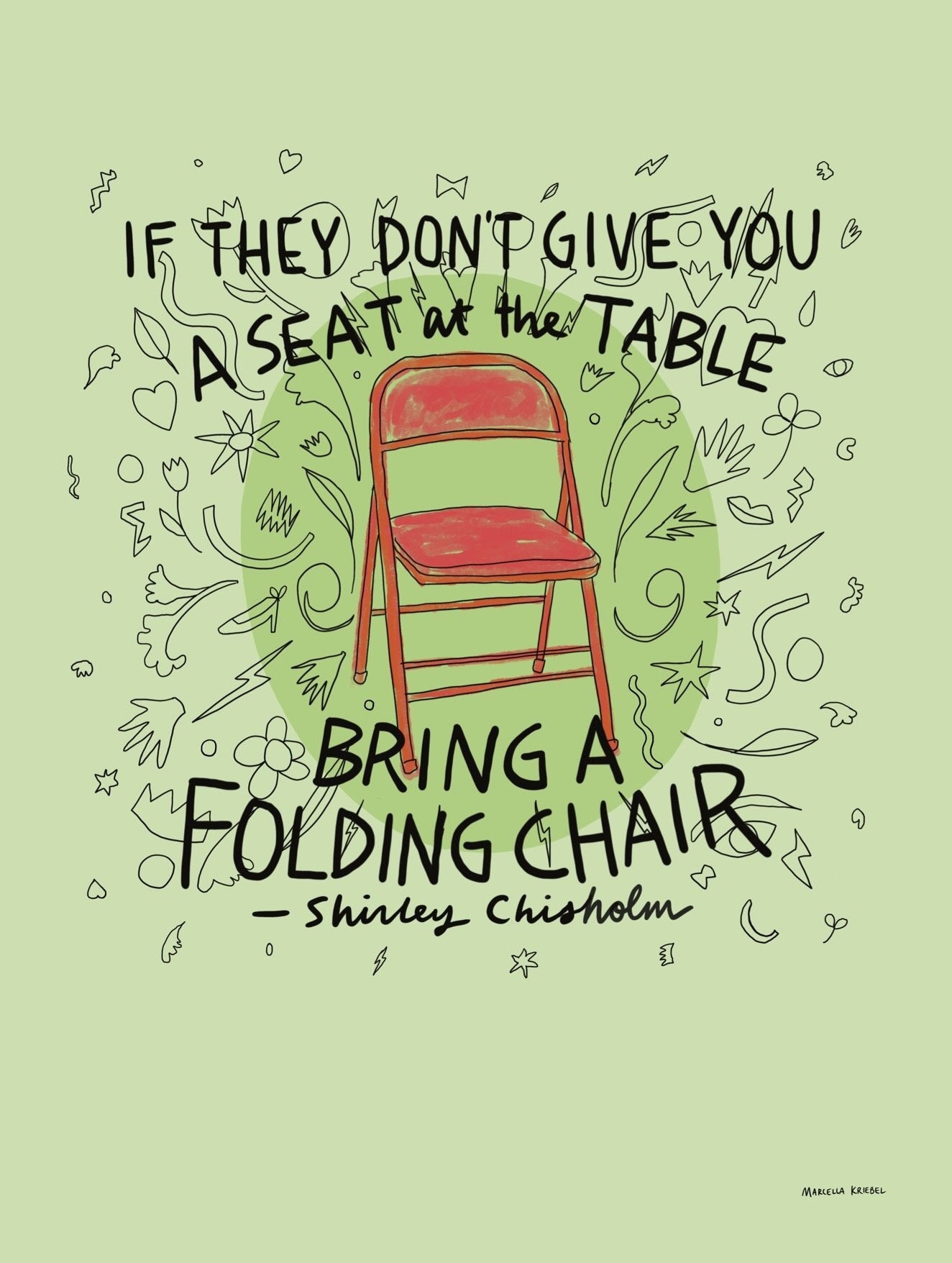 Shirley Chisholm Quotes Folding Chair – Let the powerful words of Rosa Parks, Desmond Tutu, Martin Luther King Jr. and other famous Black voices move you. . The Oscar-winning If Beale Street Could Talk actress, 52, plays Shirley bring in a folding chair.'” Her personal motto was “unbought and unbossed.” King has long admired Chisholm’s spirit. .